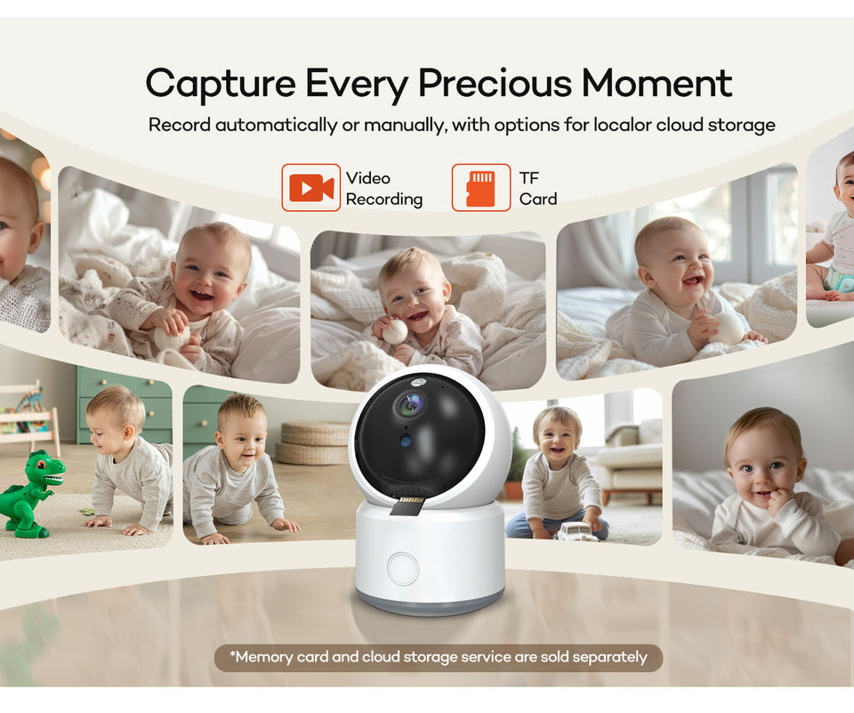Built-in Sirène, Vision nocturne, Écran tactile, Audio bidirectionnel, Détection sonore, Détection de mouvement, Rappel de l'alimentation, Berceuses, Surveillance de la température, Lecteur de musique, PAN-TILT