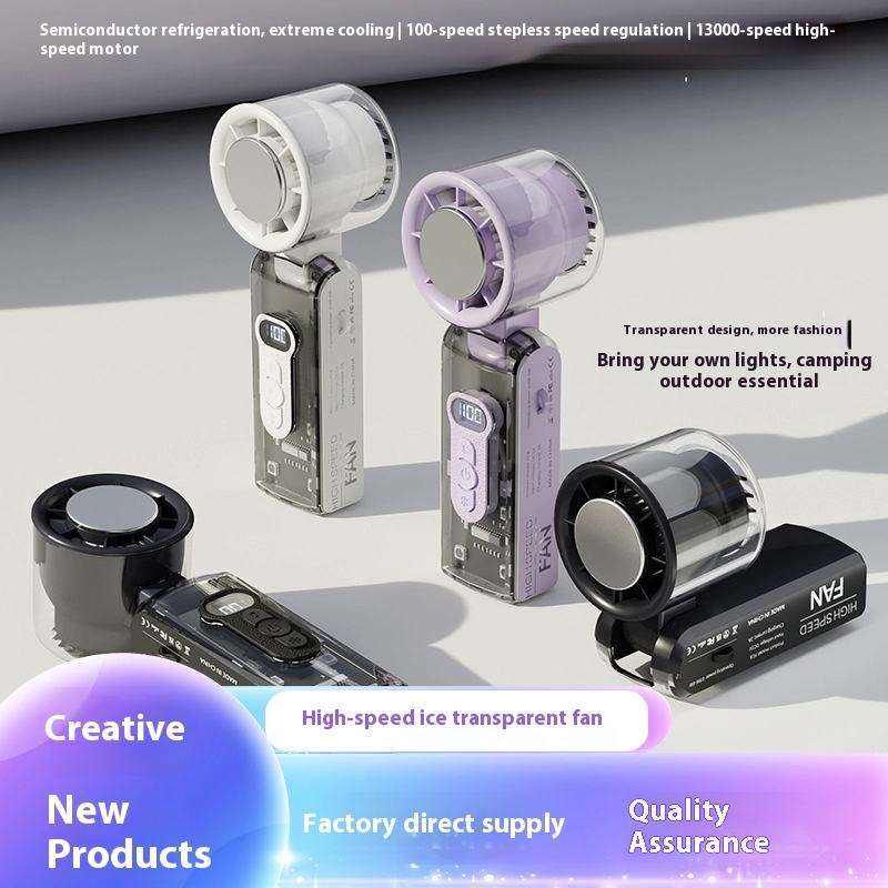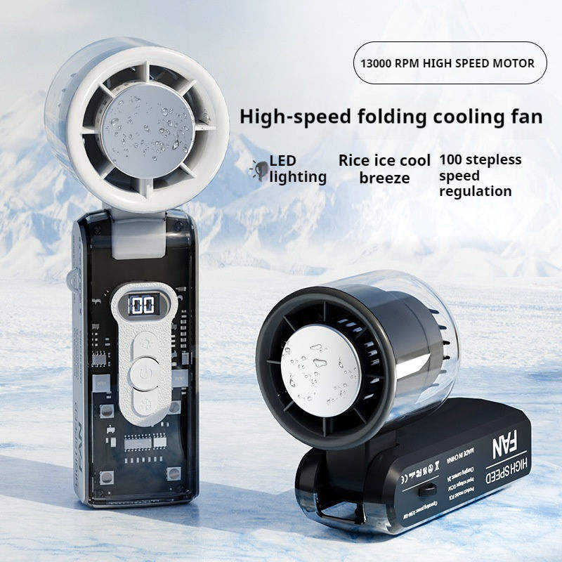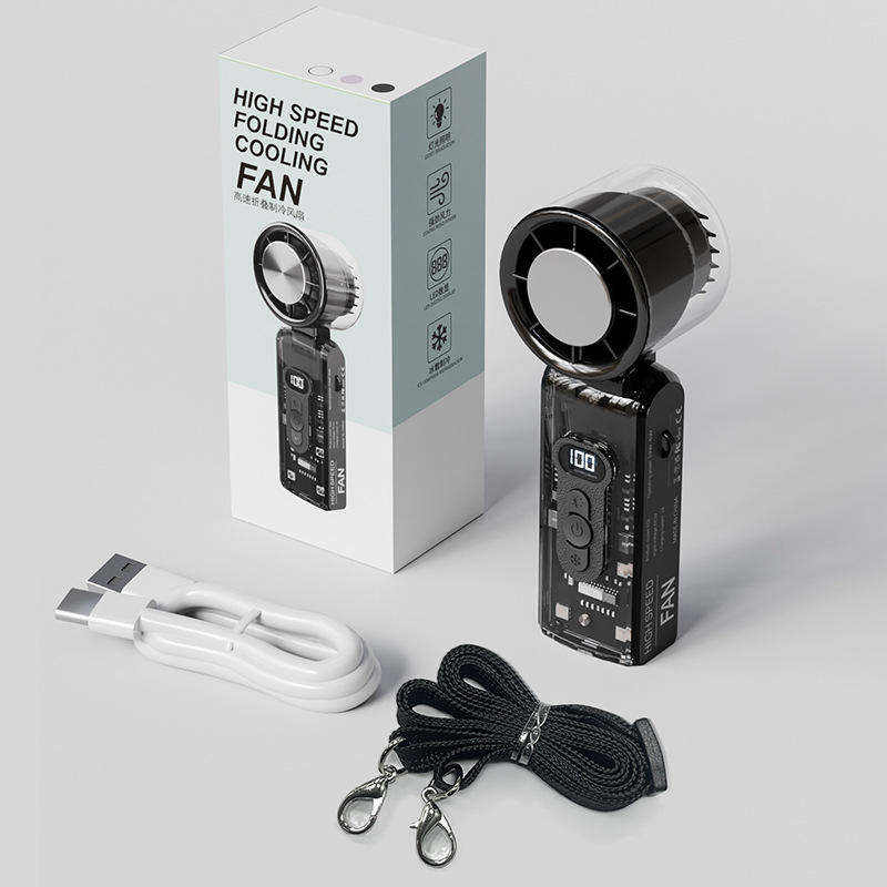 Rechargeable Digital Display Turbo Fan Portable Wearable Foldable Mini Pocket Handheld Fan Travel Camping Outdoor USB Battery