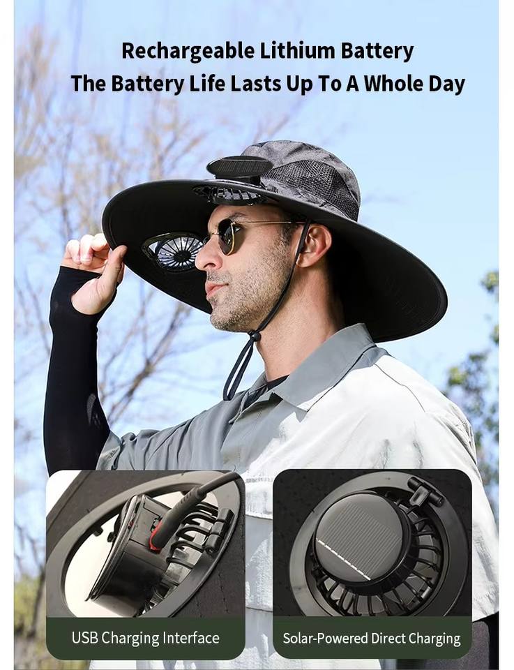 Chapeau Unisexe Rechargeable à Double Ventilateur Alimenté par Énergie Solaire - Chapeau de Pêcheur Décontracté pour Cyclisme, Sports de Plein Air et Pêche, Protection Solaire