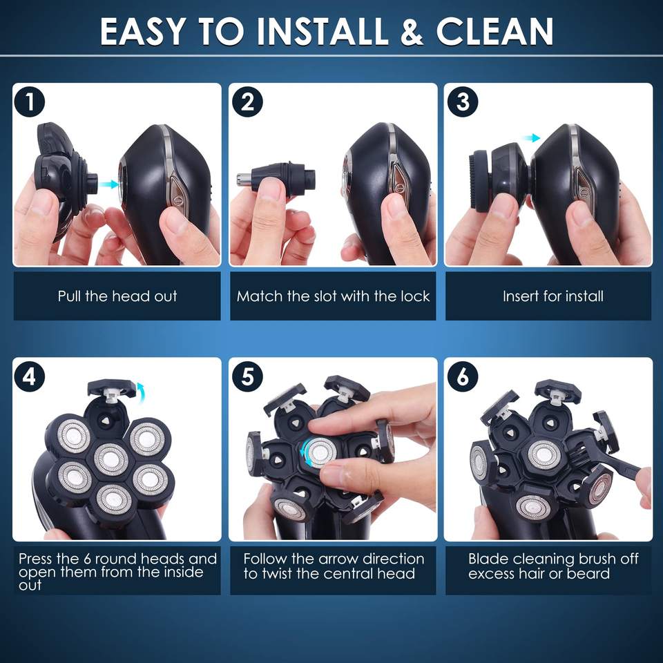 Kit de toilettage corporel électrique rechargeable, étanche IPX7, rasoir pour hommes chauves, tondeuse nez et barbe, tondeuse à cheveux
