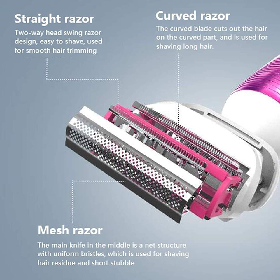 Rasoir électrique rechargeable pour femmes, rasoir sans douleur pour utilisation humide ou sèche, avec tondeuse pour le bikini, épilation pour les jambes, les aisselles, le corps