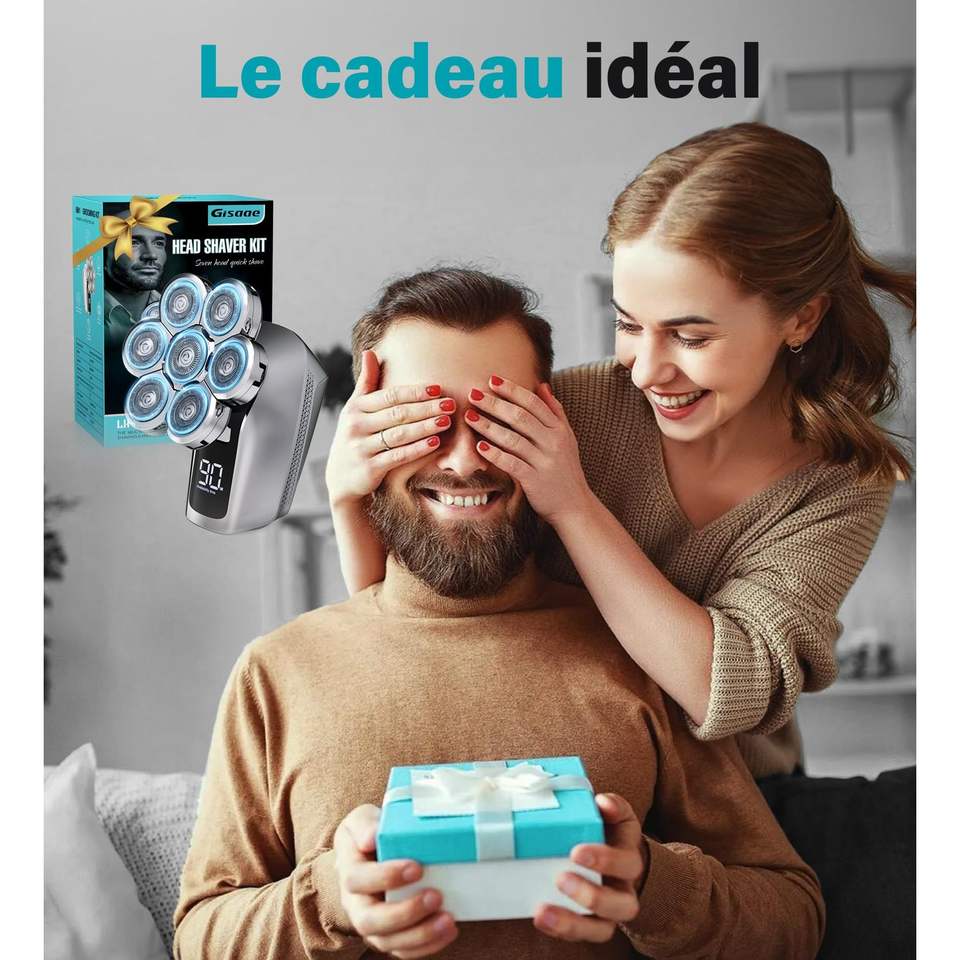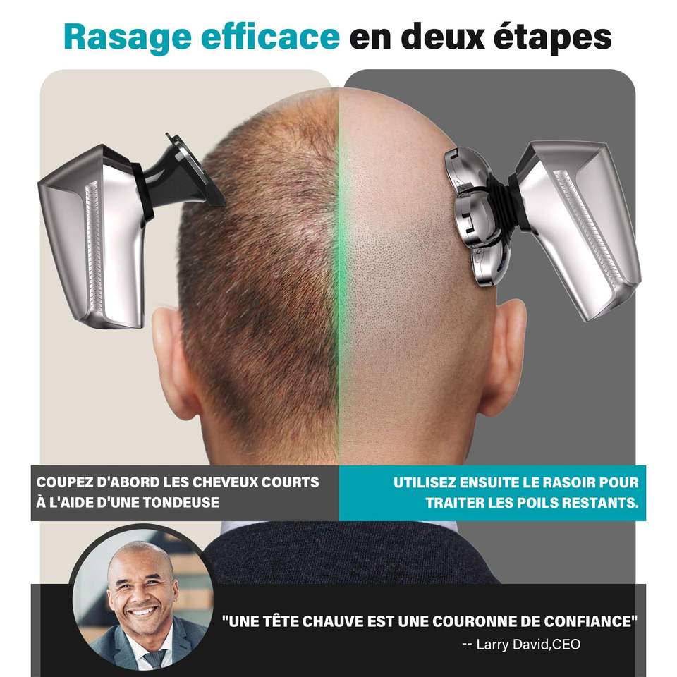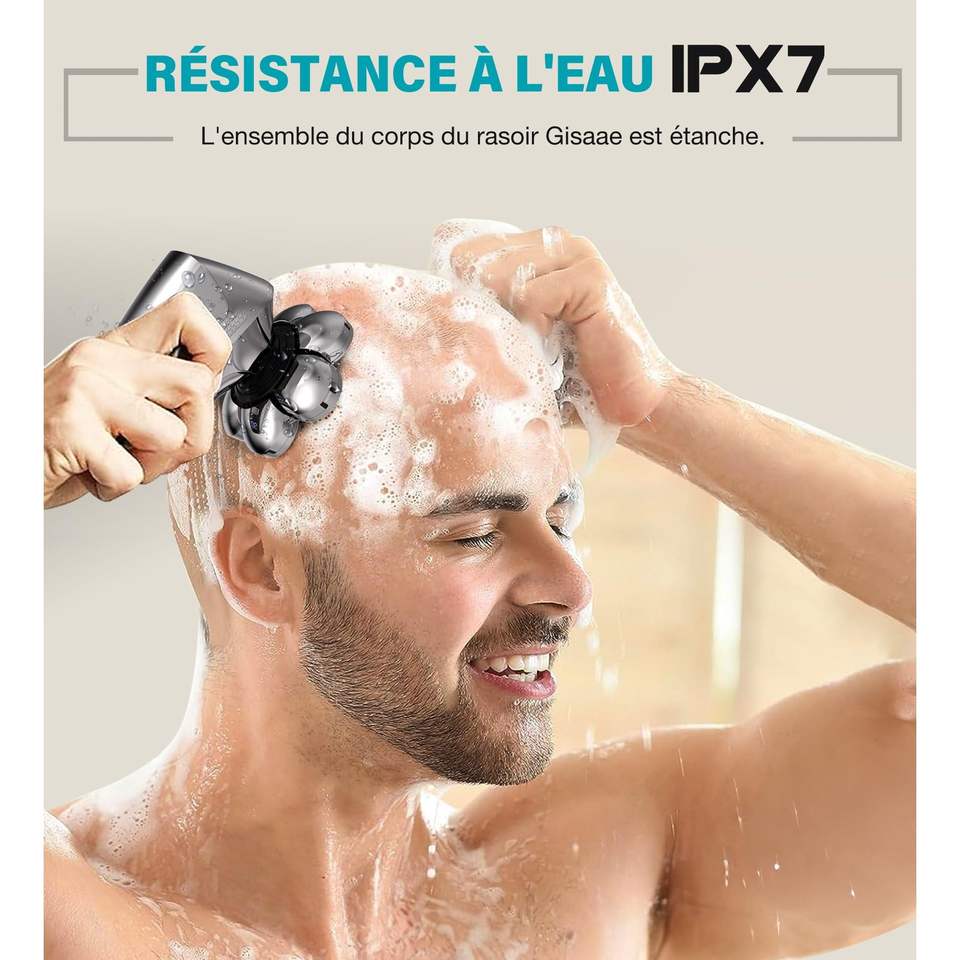 Rasoir Électrique Rotatif Rechargeable pour Hommes, Étanche IPX7, Kit de Toilettage Humide/Sec avec Rasoir pour Crâne Chauve en Allemand