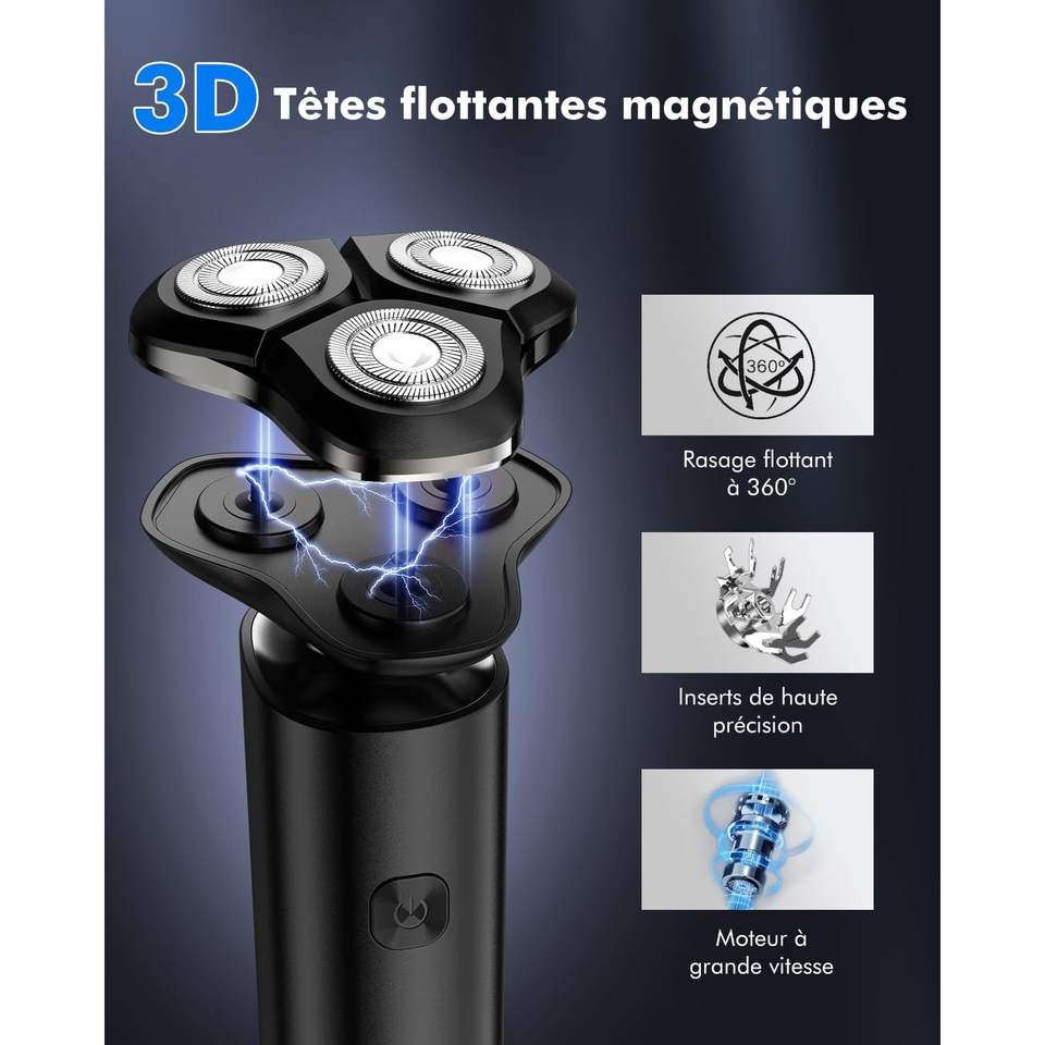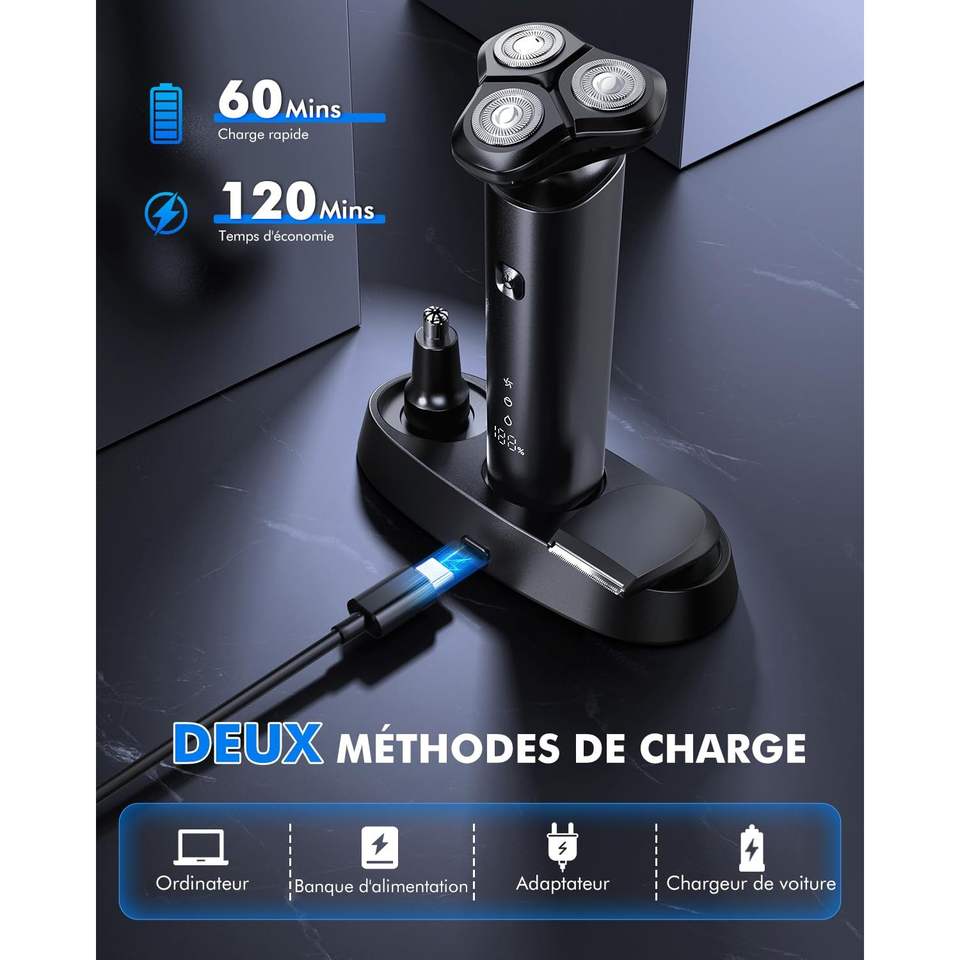 Rasoir électrique rechargeable pour hommes, rasoir étanche pour utilisation humide et sèche avec écran LCD, charge USB-C, IPX7, utilisation corporelle