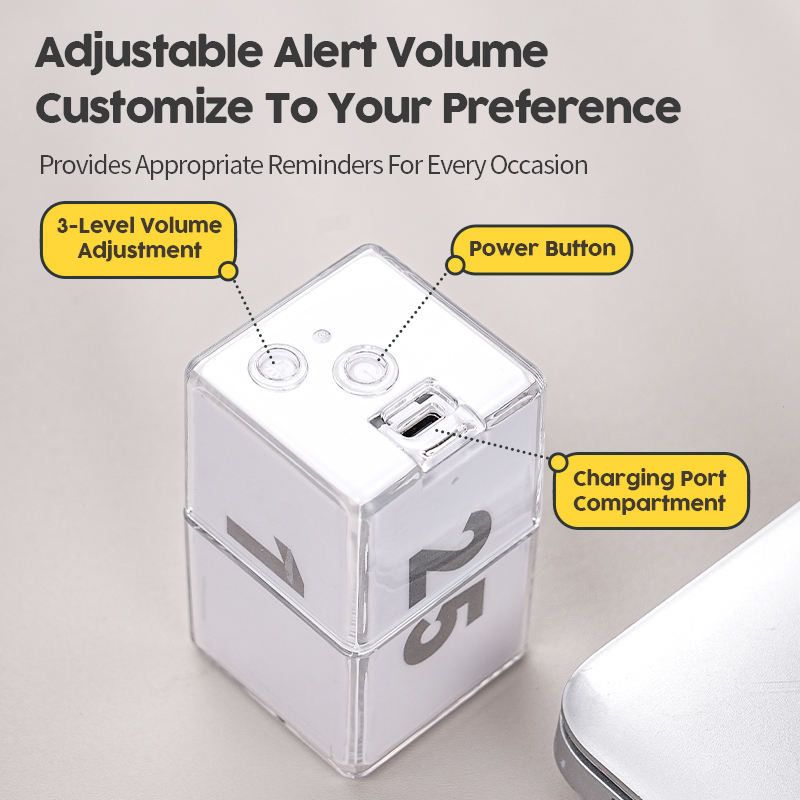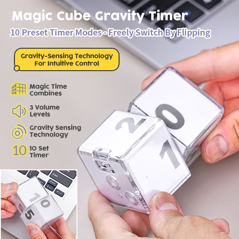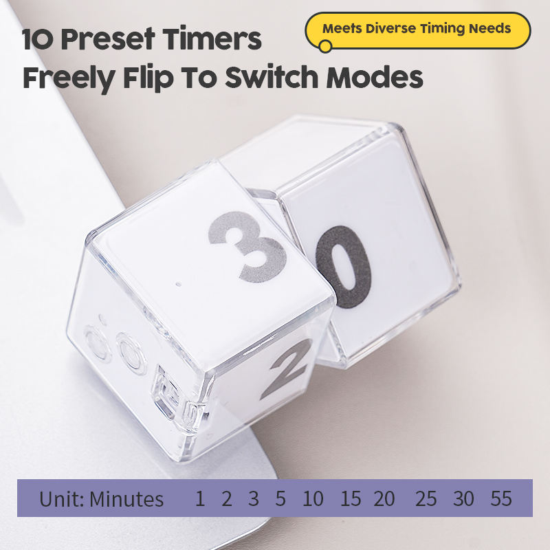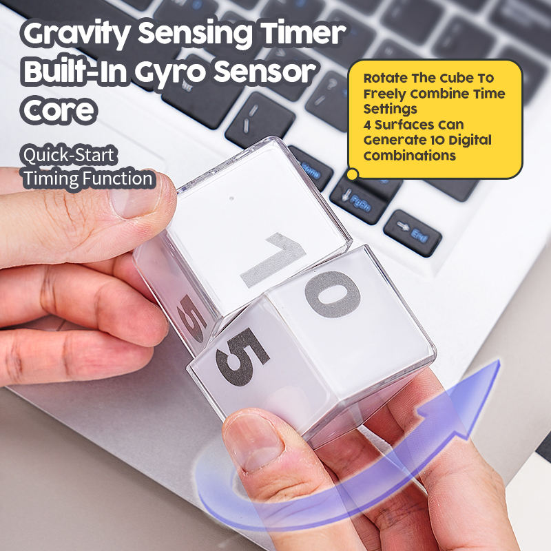Minuteur de cuisine carré compact rechargeable avec écran LCD, compte à rebours jusqu'à 55 minutes, rappel de temps, cube magique à induction à bascule, gravité
