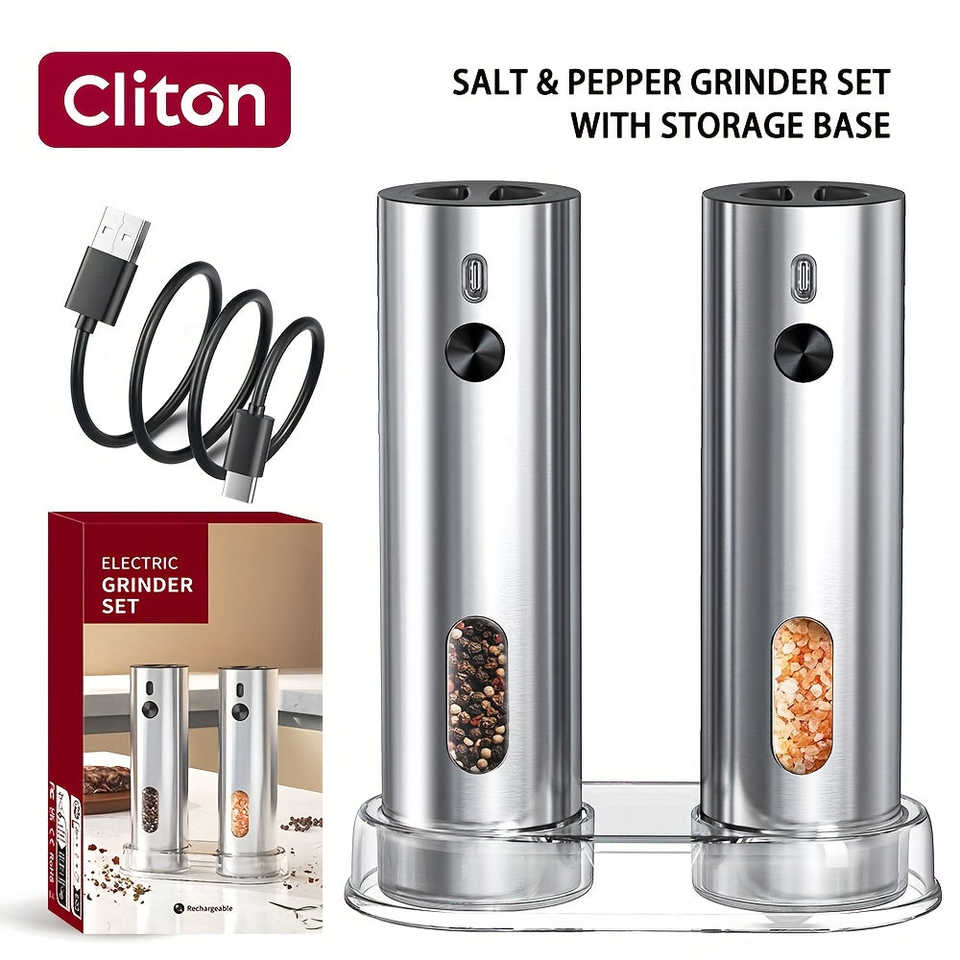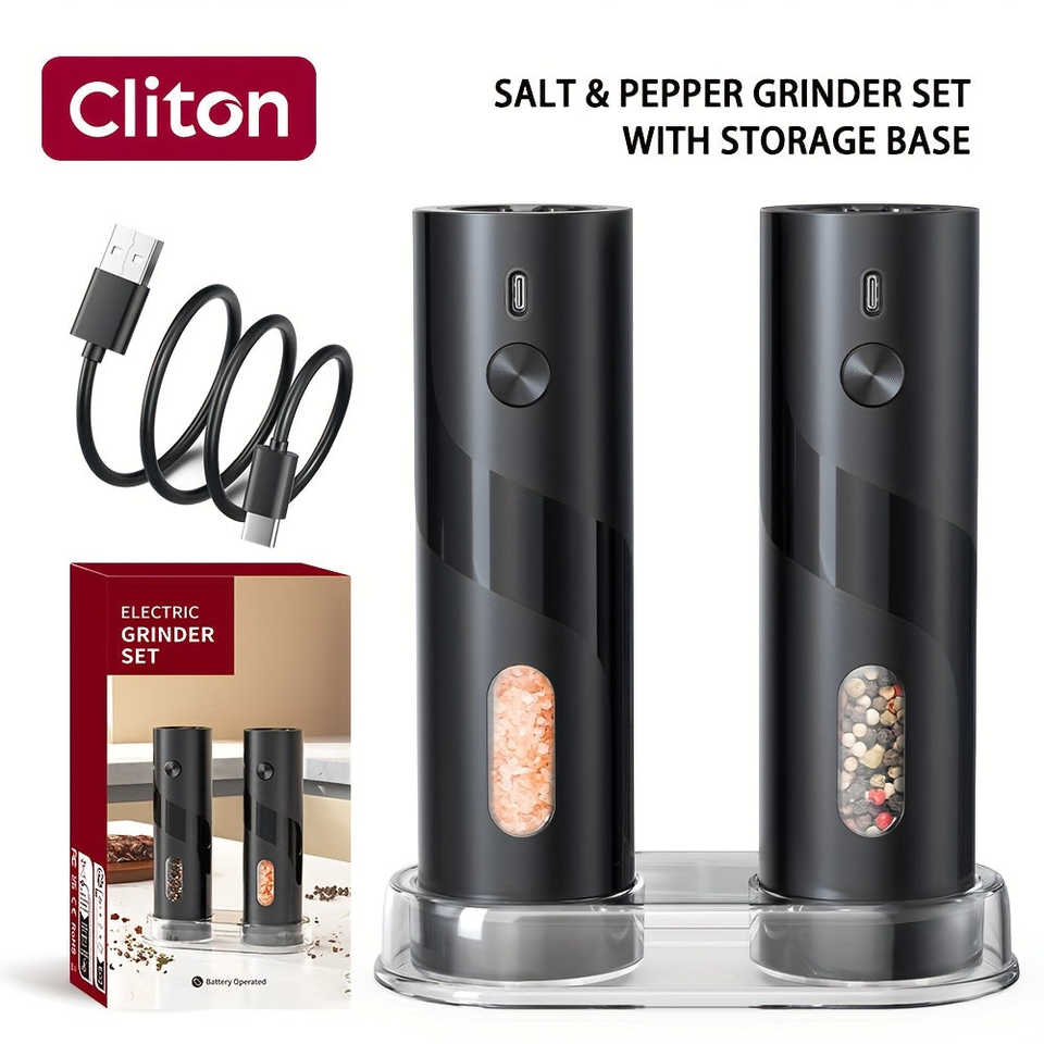 Ensemble de moulins à sel et à poivre électriques à LED rechargeables, moulin à batterie USB, réglage automatique, option réglable - 1 pièce, 2 pièces, emballé dans une boîte en métal