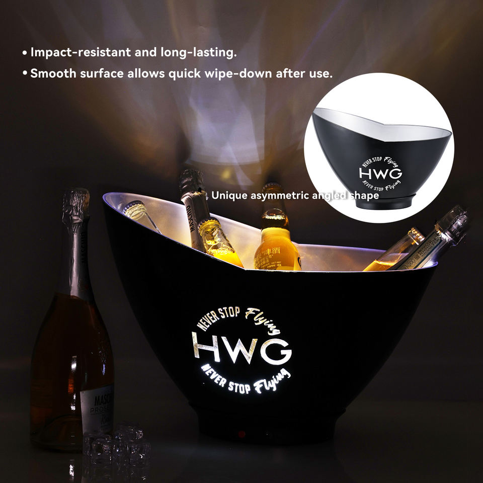 Seau à glace en plastique rechargeable à LED pour vin, bière, champagne noir PS PP Big Ice Cooler