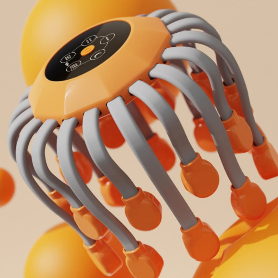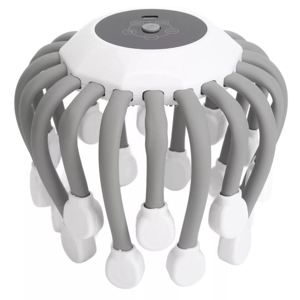 Masseur de tête rechargeable en forme de pieuvre, 5 modes, relaxation profonde du cuir chevelu, sans fil, portable, avec nœuds en silicone doux