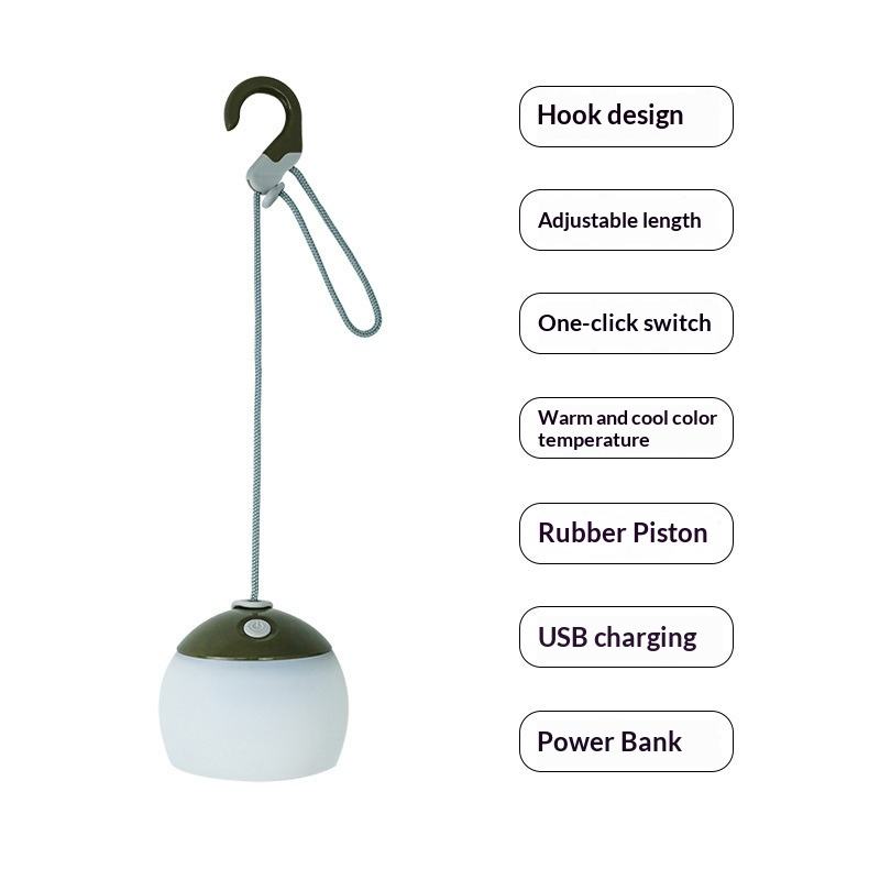 Lanterne de camping rechargeable pour l'extérieur, deux modes d'éclairage, à suspendre et à poser, pour la charge de petits appareils électroniques