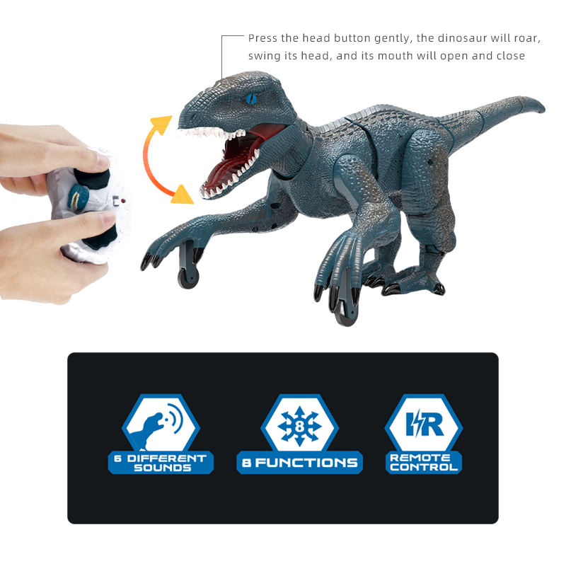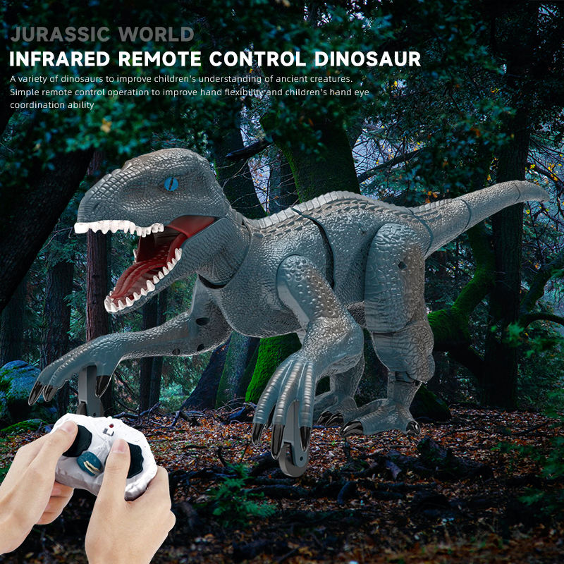 Jouets rechargeables RC Velociraptor Jouets dinosaures télécommandés infrarouges avec bruit de rugissement réaliste et simulation de marche