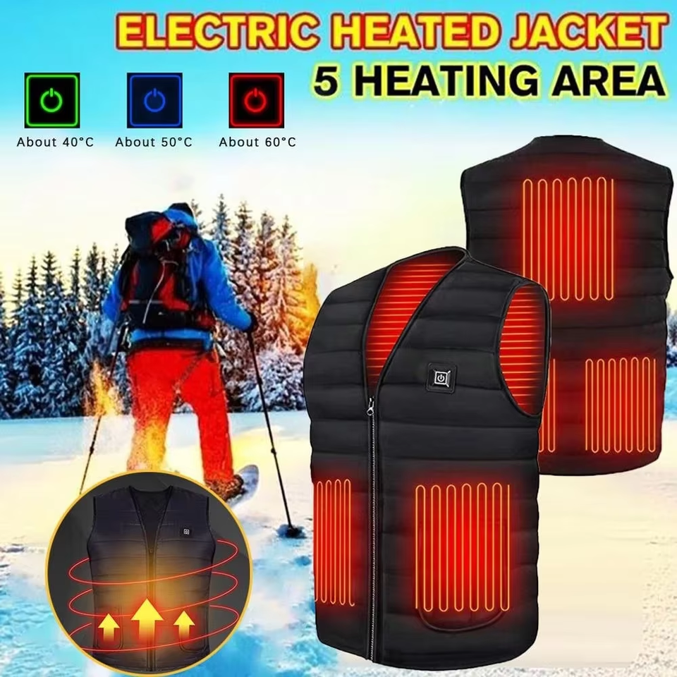 Veste auto-chauffante rechargeable 9 zones Panneaux de coussin Veste chauffante USB Gilet chauffant unisexe pour hommes ou femmes