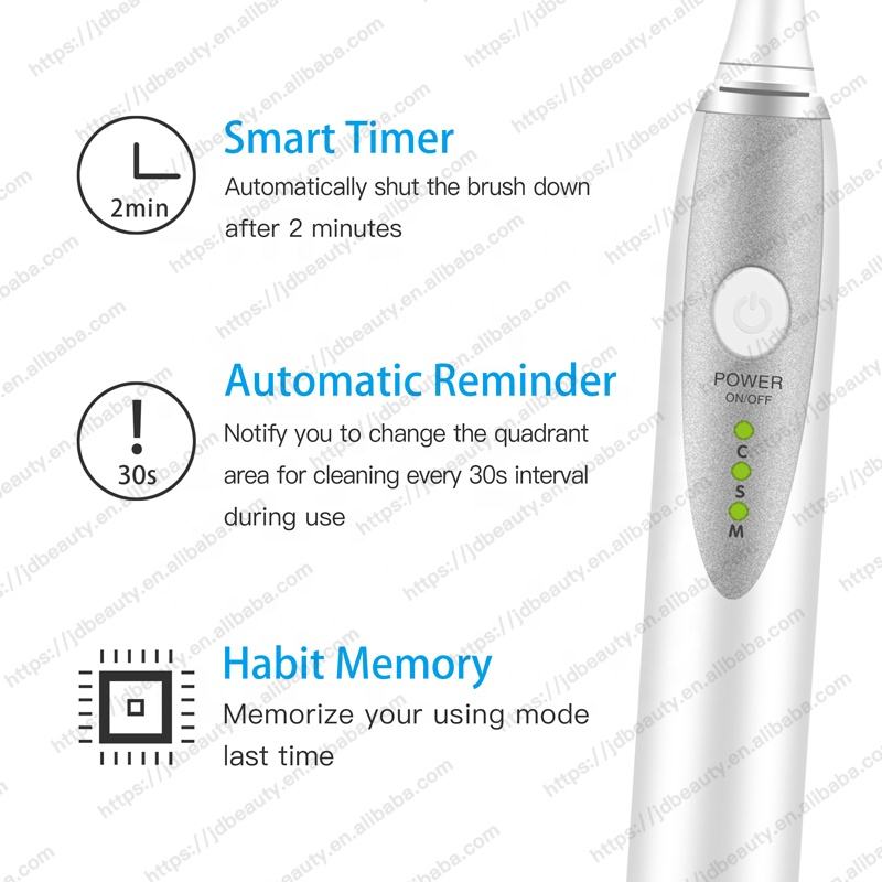 Rechargeable Sonic Brush Wireless Charging Base 31200 VPM 3 Modes IPX7 Waterproof 2min Timer 2 Heads Set
