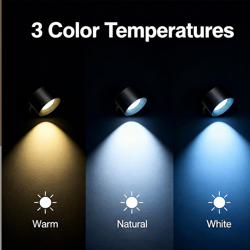 Applique murale rechargeable à piles, lampe LED magnétique avec télécommande, 3 modes de couleur, rotation à 360°, veilleuse moderne
