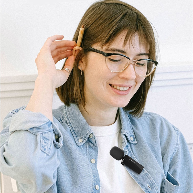 Microphone-cravate sans fil rechargeable à condensateur – Réduction de bruit, léger et portable pour enregistrement sur iPhone J5, en ABS