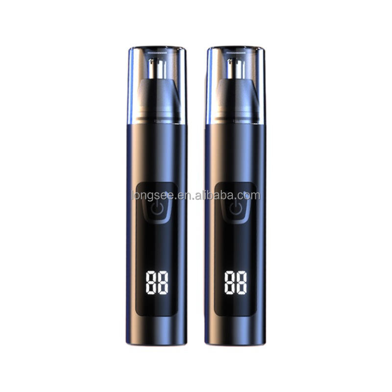 Tondeuse à poils de nez et d'oreilles sans fil rechargeable, étanche et indolore pour hommes et femmes avec affichage numérique à double lame rotative