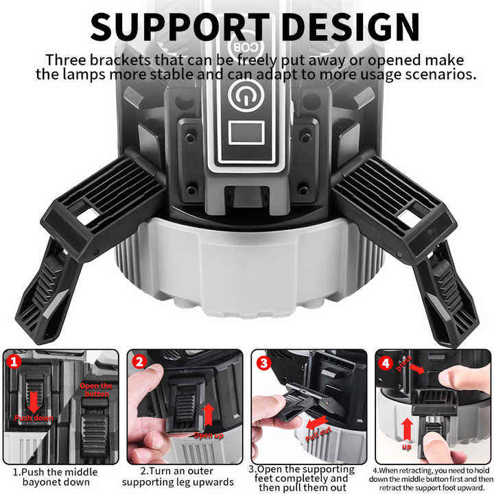 Lampe de Travail Rechargeable Portable Led Trépied Lampe de Travail Réglable Lampe de Travail Pour Atelier Site Éclairage Camping Extérieur Lampe