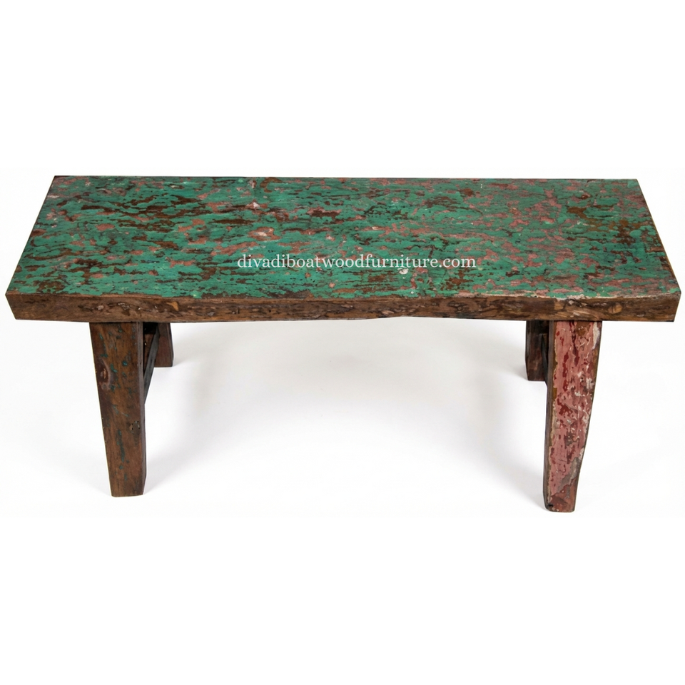 Banc Rita en bois de bateau récupéré, couleur naturelle, design éco-responsable et durable, fait main, petit tabouret en bois pour l'intérieur et l'extérieur