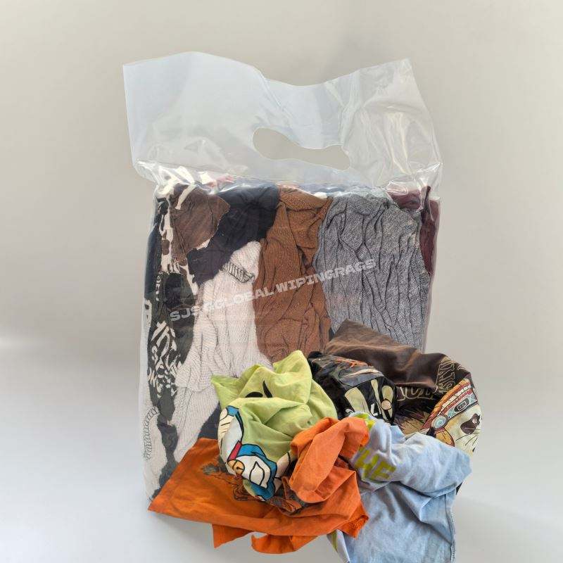 Chiffons en tissu industriel de coton recyclé, chiffons de nettoyage multicolores, chiffons de t-shirts recyclés pour le nettoyage