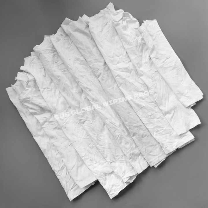 Chiffons de nettoyage industriels en coton recyclé pour atelier, blancs imprimés, issus de t-shirts coupés