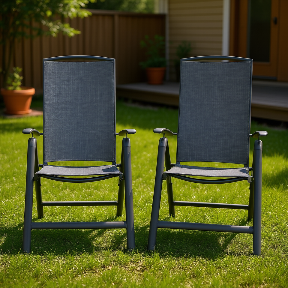 Chaises de patio inclinables avec cadre en aluminium, dossier haut réglable, chaise de jardin pliable d'extérieur, tissu en polyester, design contemporain