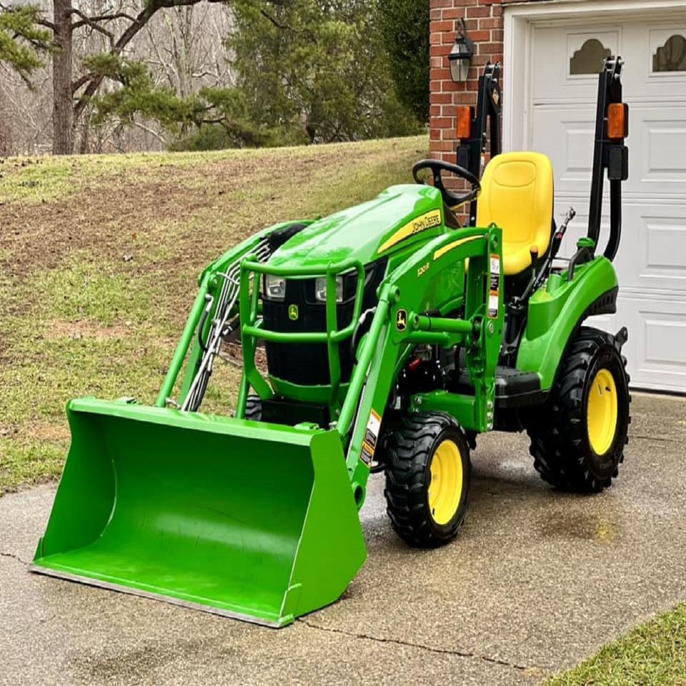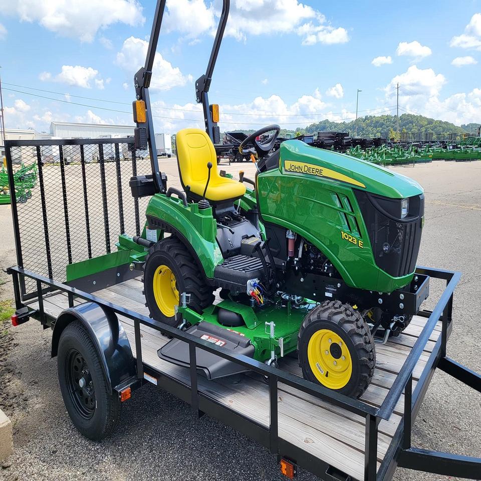 Tracteur utilitaire sous-compact John Deerre 1023E reconditionné, 23 CV, diesel, 4 roues motrices, avec chargeur et prise de force, à vendre