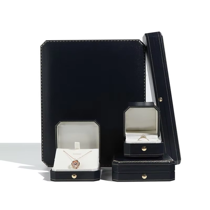 Boîte à bijoux rectangulaire en cuir PU personnalisée en velours, boîte pour bague, boucle d'oreille, bracelet et collier, boîte d'emballage de bijoux de mariage avec logo