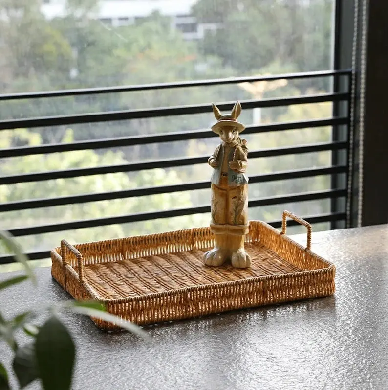 Plateau en rotin rectangulaire et rond Matériau en bambou durable
