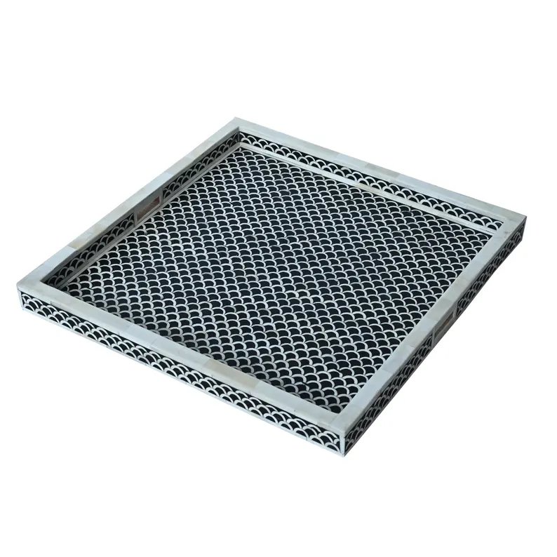 Plateau de service rectangulaire Art Déco en os incrusté avec motif personnalisé pour la décoration de table, plateau à fruits fait main