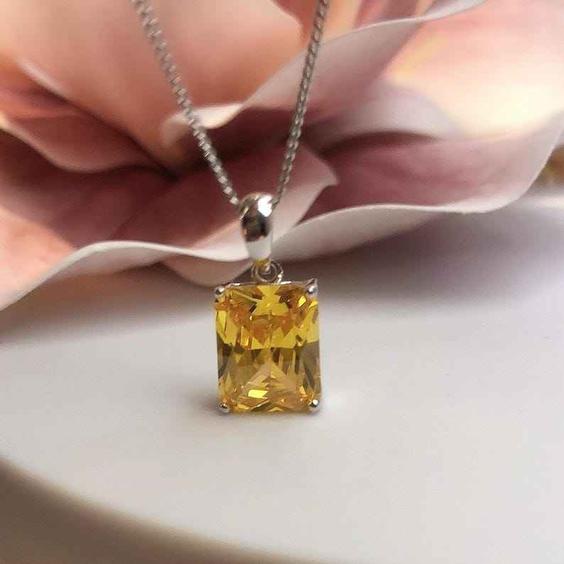 Collier rectangulaire en citrine, argent sterling plaqué or, pendentif pierre de naissance de novembre, cadeau d'anniversaire pour femme