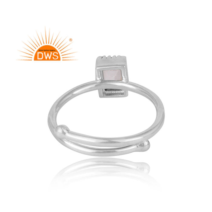 Bague ajustable en argent sterling 925 avec pierre précieuse en quartz taillée en rectangle, sertie dans un cadre, certifiée GIA, pour bijoux féminins