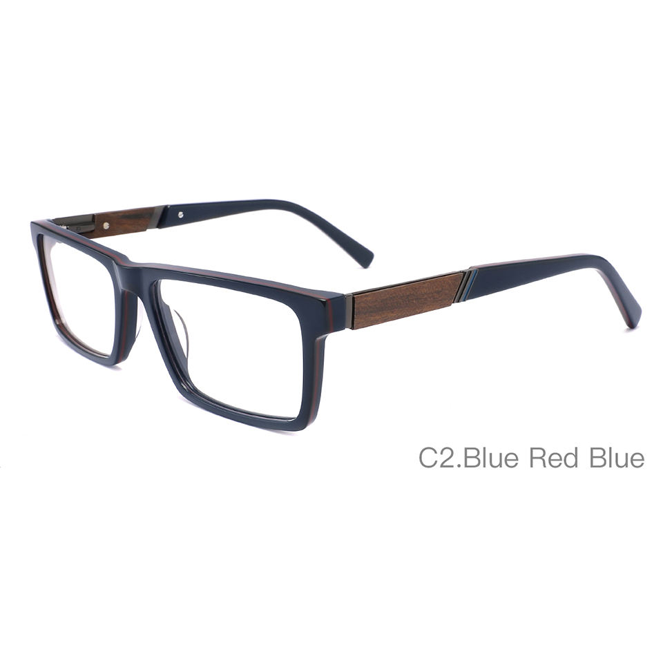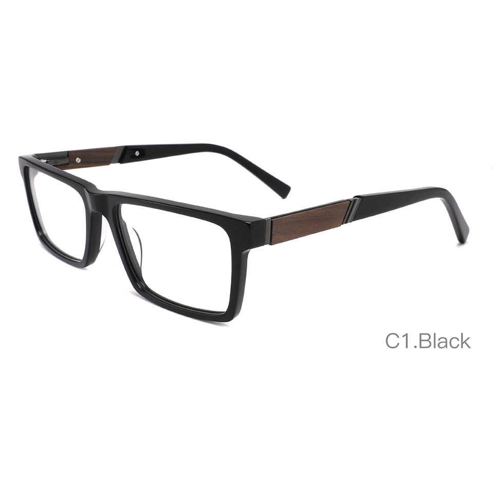 Lunettes de vue rectangulaires pour hommes, montures en acétate tendance, verres polis avec branches en bois, charnière à ressort réparable