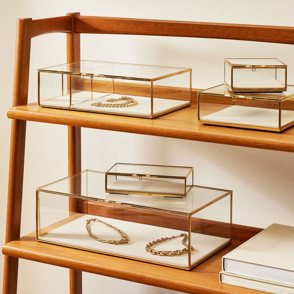 Boîte à bijoux en verre Boîte à bijoux moderne en laiton antique en verre Boîtes de rangement pour la décoration intérieure Boîte à bijoux carrée en verre faite à la main Best-seller