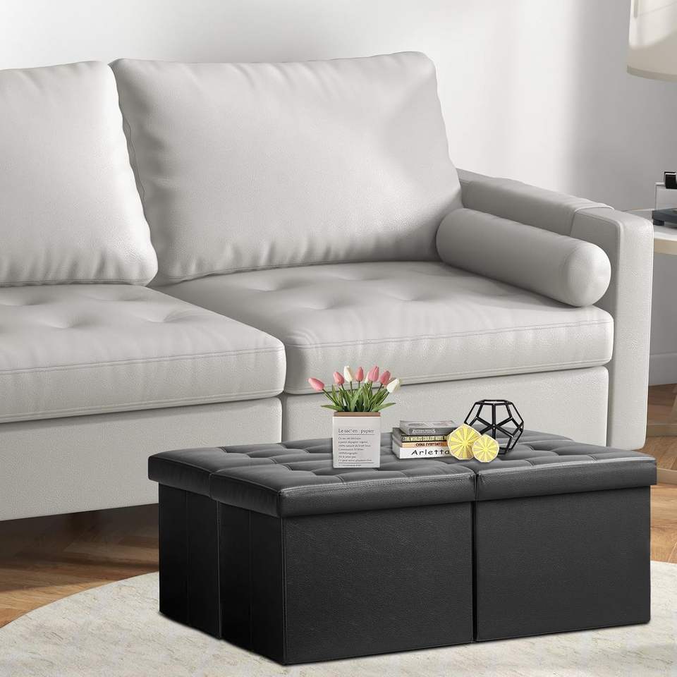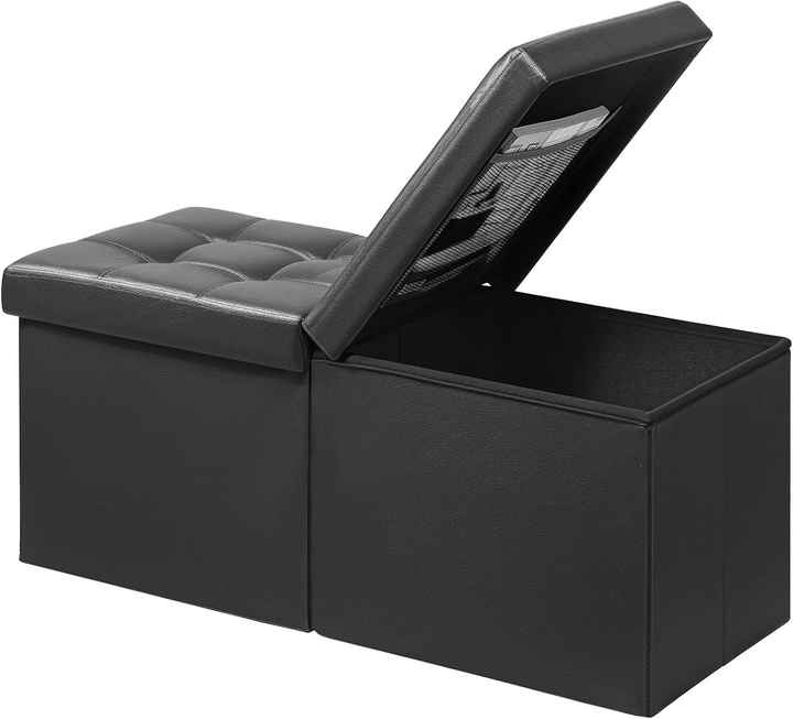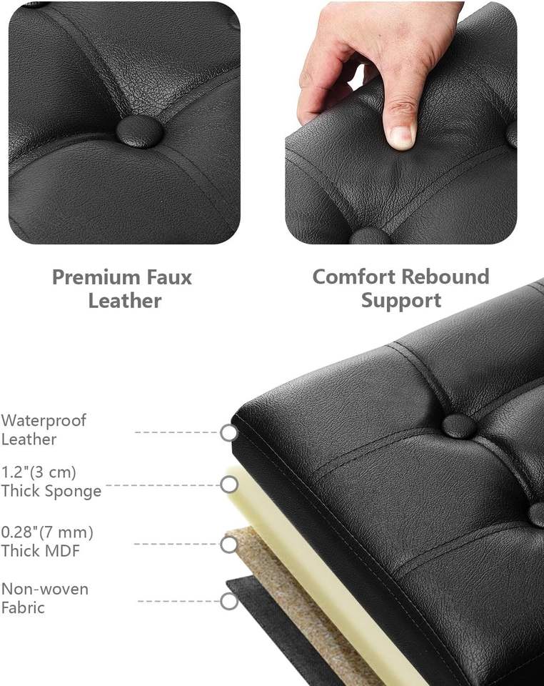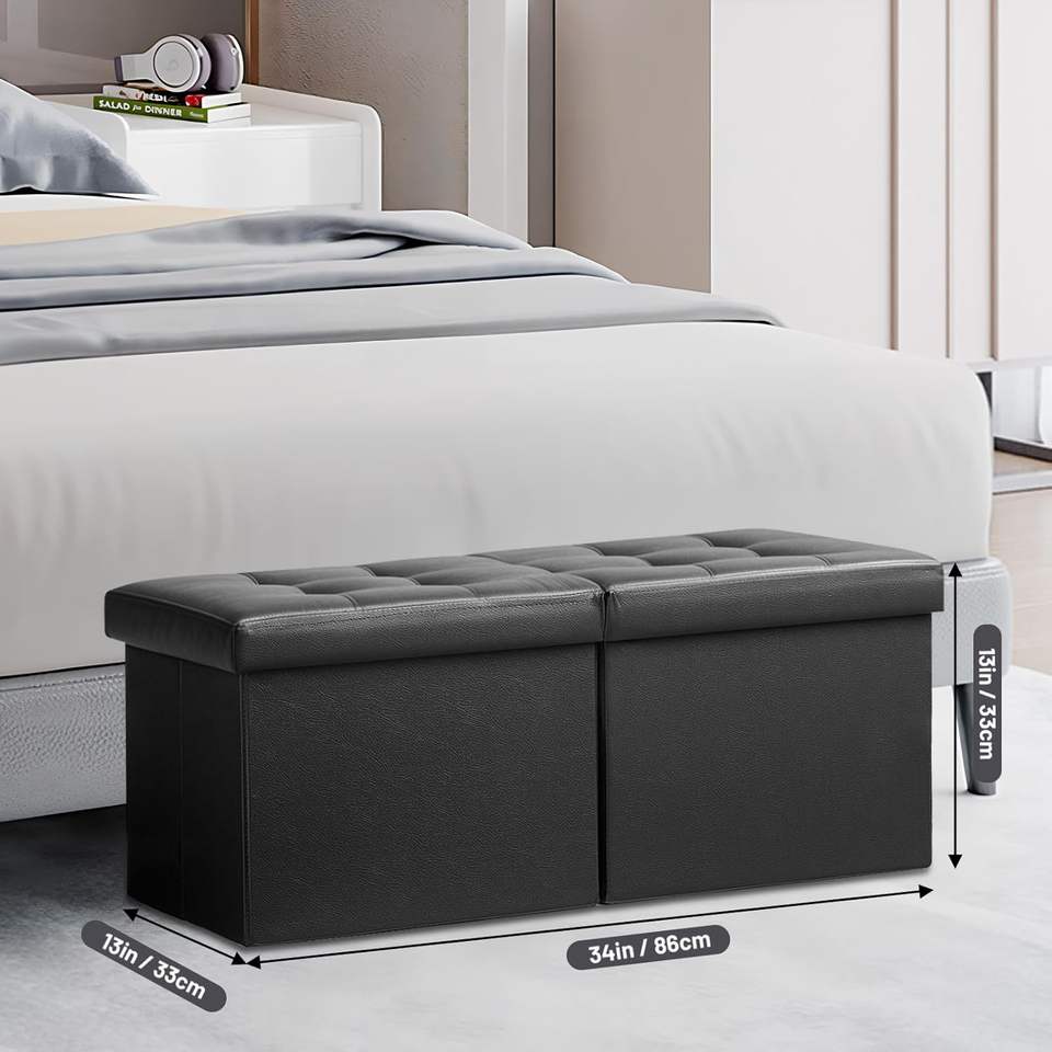 Banc de rangement rectangulaire en cuir noir pouf jouet boîte de rangement lit stockage à la maison