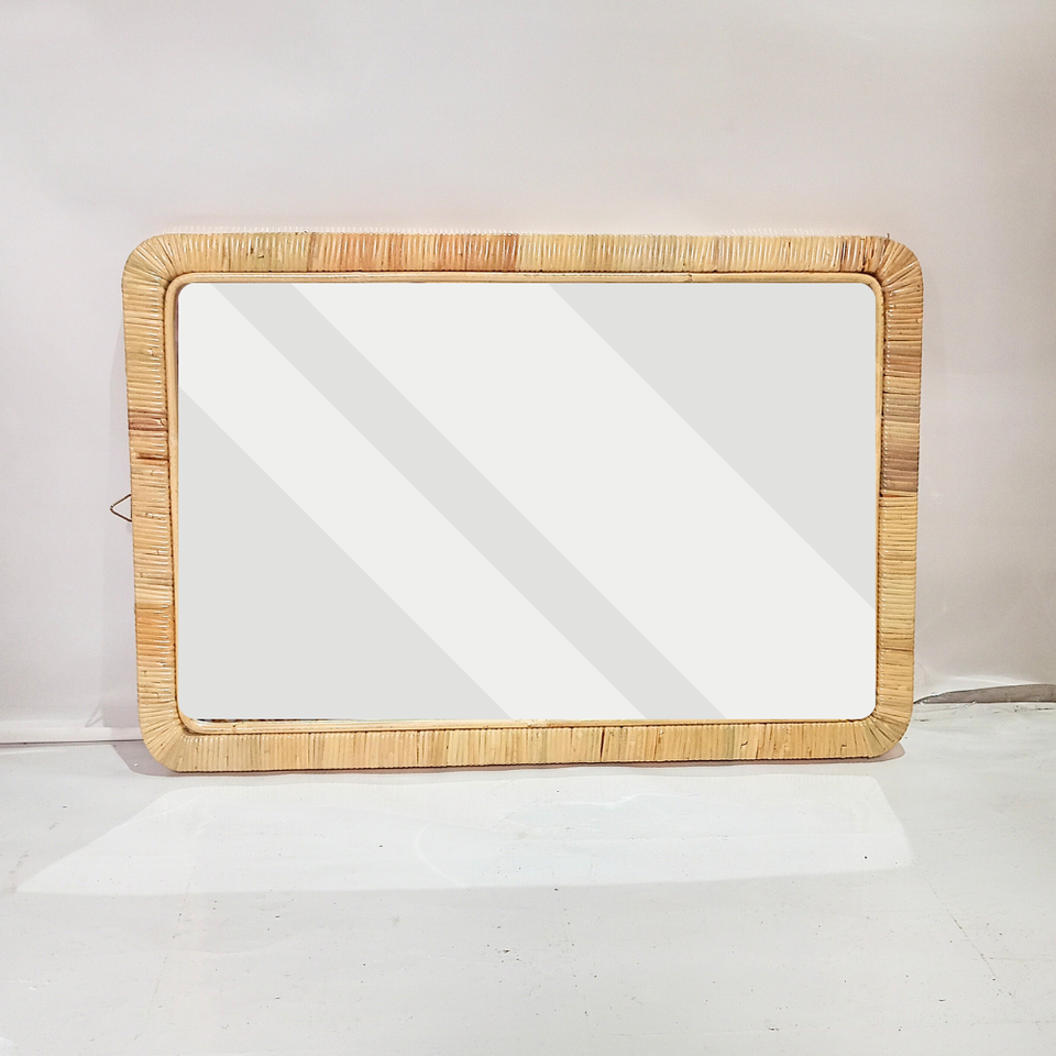 Miroir rectangulaire fabriqué à la main en rotin naturel encadré miroir mural rectangulaire Boho Chic Home Decor rotin