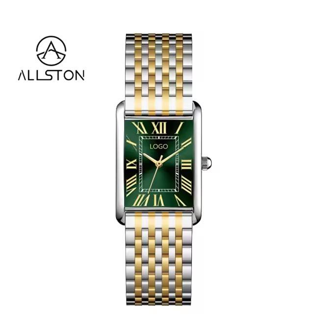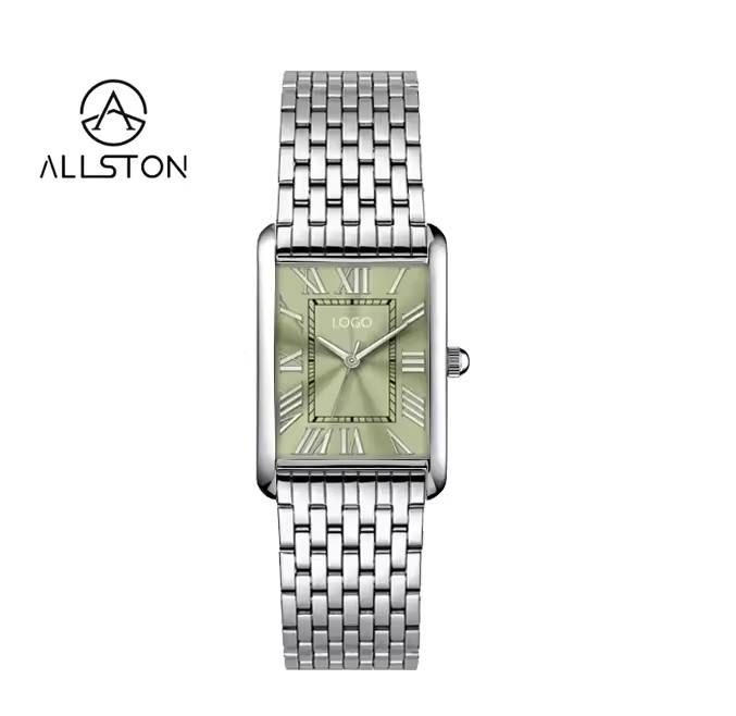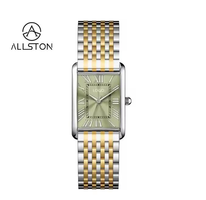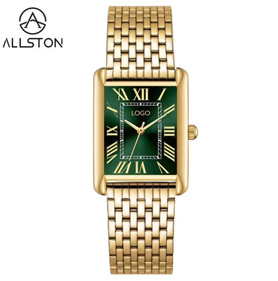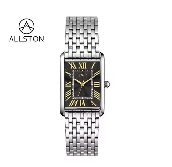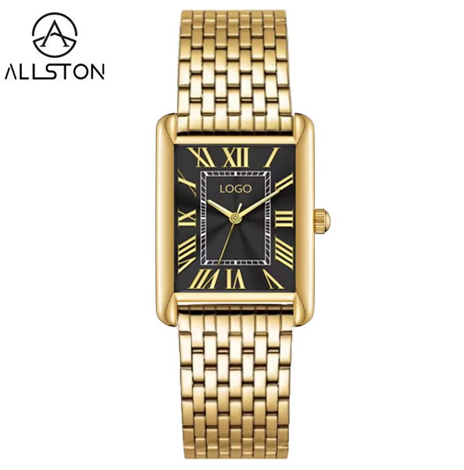 Montre rectangulaire en acier inoxydable de style ancien pour homme, à quartz, élégante, tendance, étanche, avec bracelet intégré