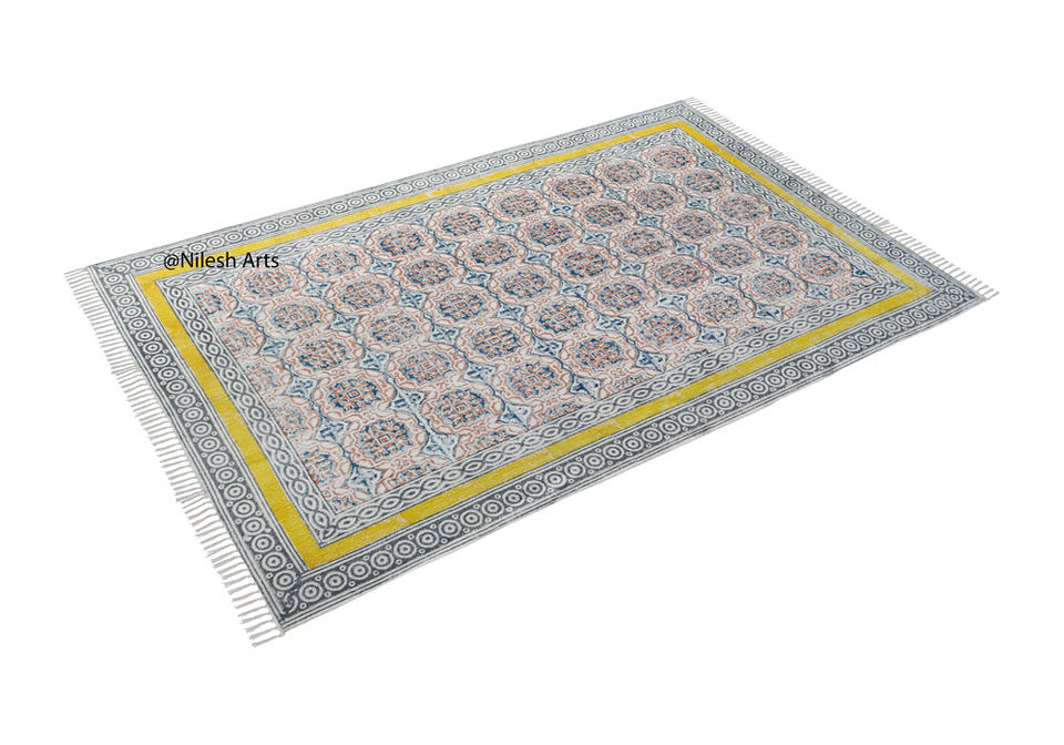 Rectangle Motif Designer Dhurries 100% Main Bloc Imprimer Tapis pour La Maison Salon Jardin Décor Lavable et Utilisation De Voiture