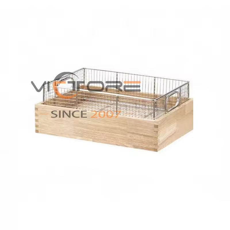 Présentoir rectangulaire en bois pour desserts, buffet traiteur, confiseries, avec panier à frites en acier inoxydable