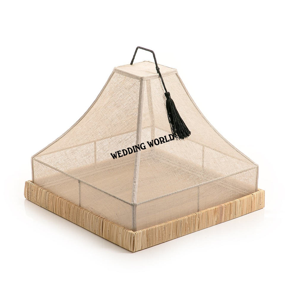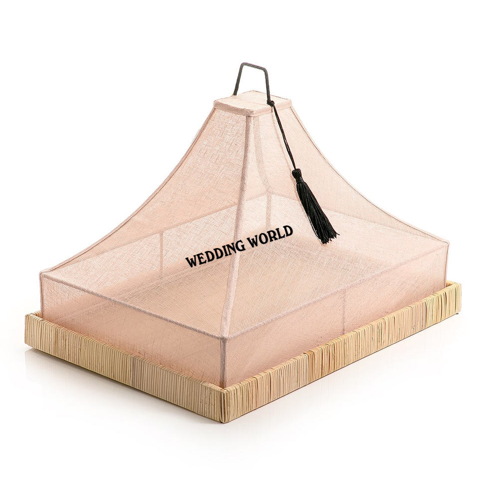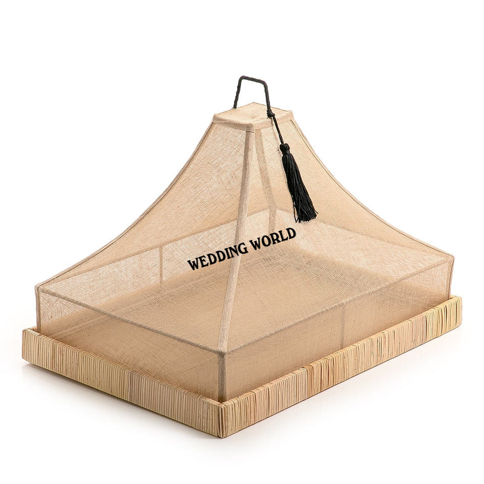 Plateau Rectangle en rotin avec couverture en filet Plateau design fait main de qualité supérieure Plateau en rotin en gros élégant classique