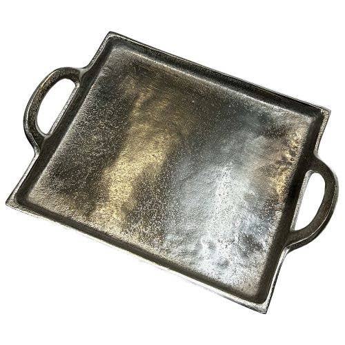 Plateau de service alimentaire en aluminium de forme rectangulaire avec poignée fini argent pour les événements de mariage de table Snacks et plateau de service de boissons