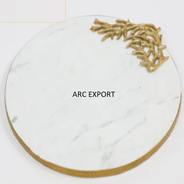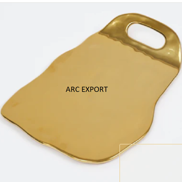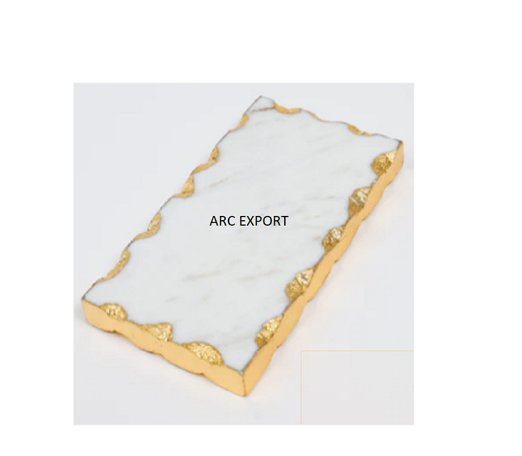 Plateau de nourriture de bordure de couleur dorée en forme de rectangle avec plateau de service unique en marbre de couleur blanche plateau de décoration de table de fêtes de mariage