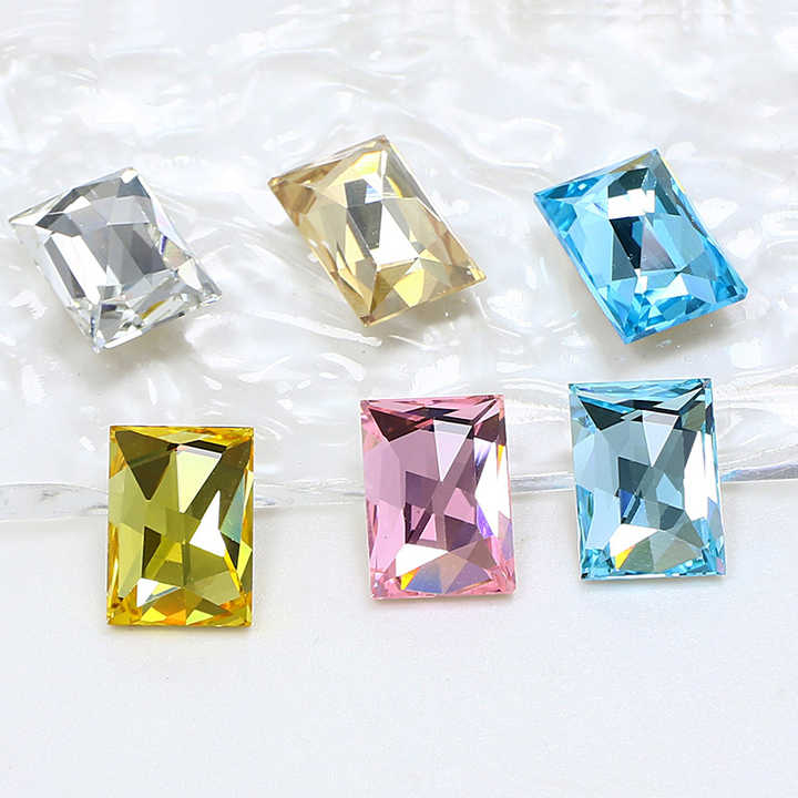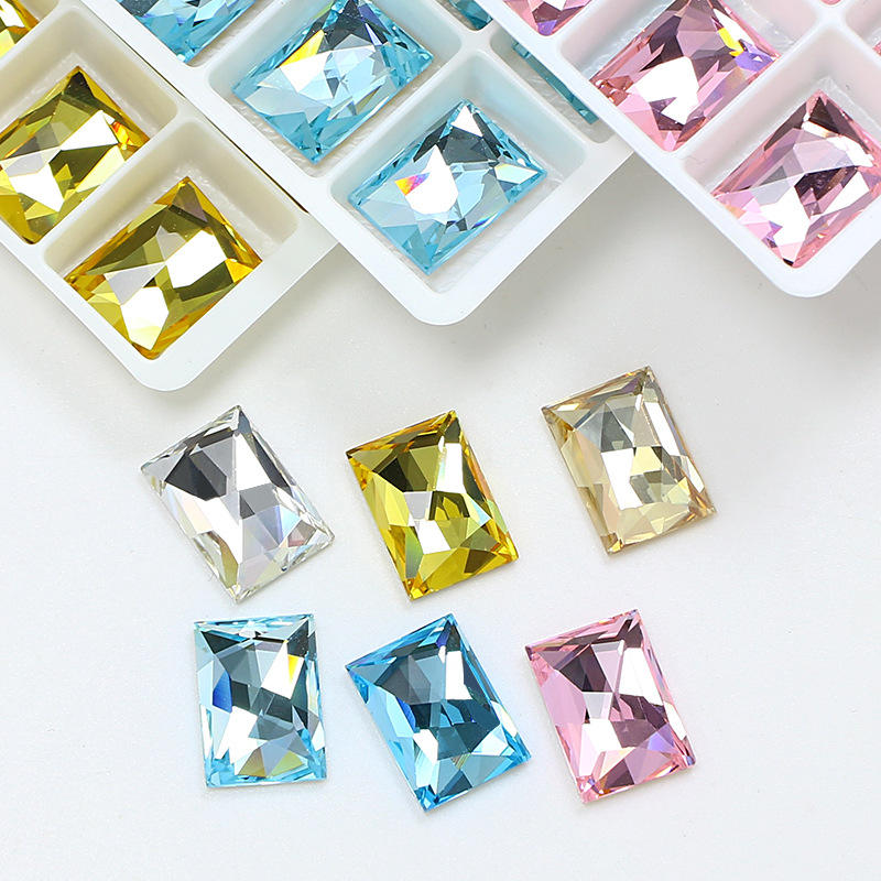 Strass en verre à dos plat de forme rectangulaire, qualité luxe, non thermocollants, perles de cristal pour sacs et chaussures, vente en gros