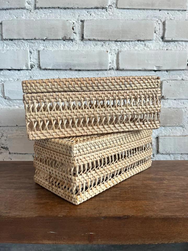 Nom:Boîte à mouchoirs rectangulaire en rotin. Dimensions : L27 x l14 x H7,6 cm