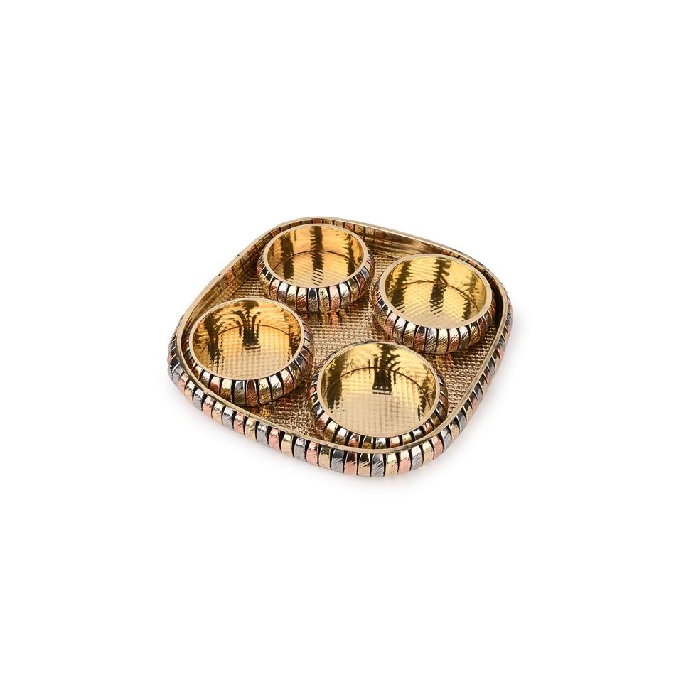 Plateau rectangulaire avec 4 bols ronds, design moderne et luxueux, en laiton poli fait main, ensemble de service pour fruits secs durable