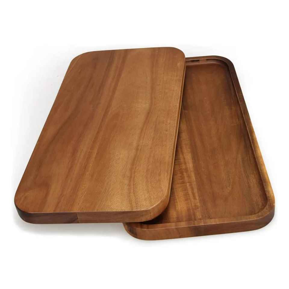 Plateau de service rectangulaire en bois d'acacia au design unique, résistant au lave-vaisselle, durable, moderne, pour cuisine, mariage, restaurant, assiettes