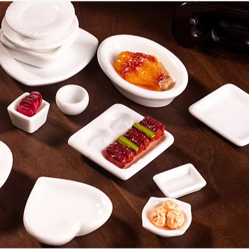 Rectangle carré coeur rond réaliste céramique résine blanc tasse à thé plats assiettes miniatures pour maison de poupée cuisine nourriture jouer jouet
