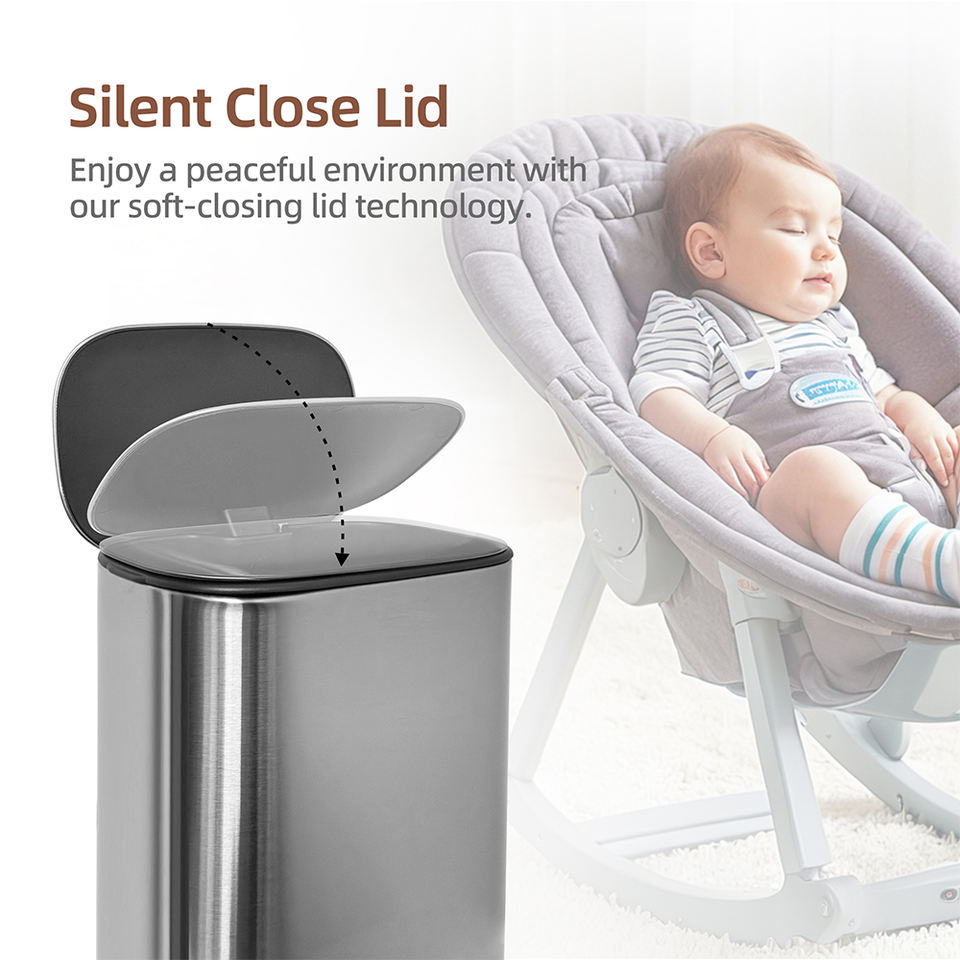 Poubelle rectangulaire de 13 gallons à pédale de marche poubelles de cuisine en acier inoxydable 50 litres