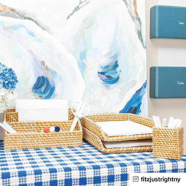 Plateau à papier rectangulaire A4 en rotin naturel. Bac à documents pour le bureau.