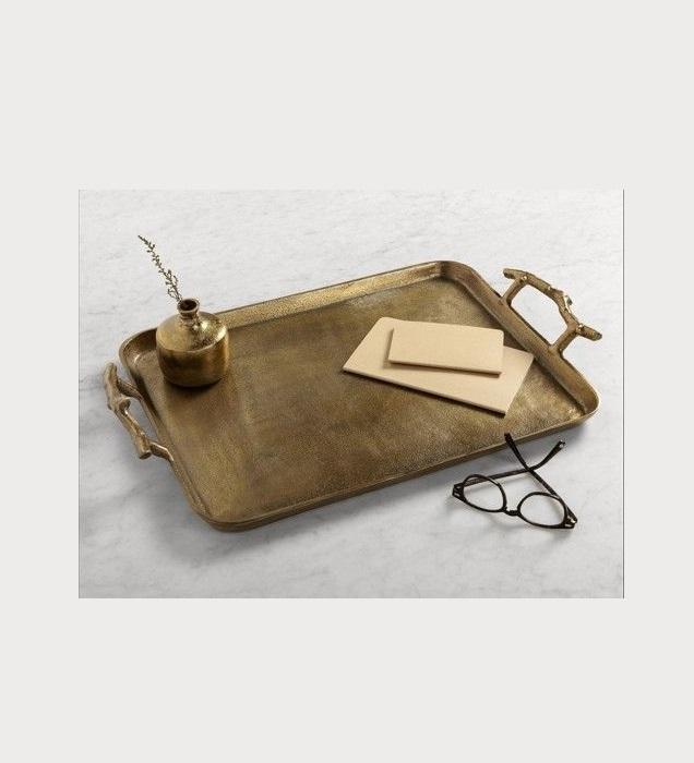 Plateau de service rectangulaire en aluminium avec finition élégante pour la restauration hôtelière