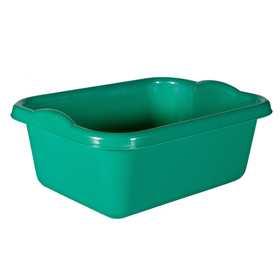 Bac rectangulaire 14 L en plastique vert pour le rangement et le nettoyage