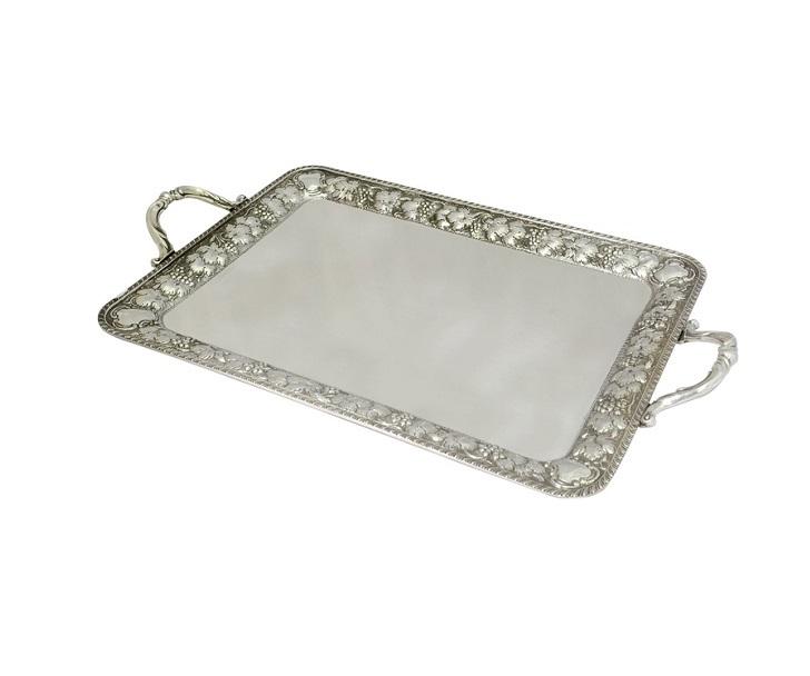 Plateau rectangulaire en laiton perlé plaqué argent aspect classique qualité supérieure meilleure vente plat en laiton luxe élégant assiette en laiton