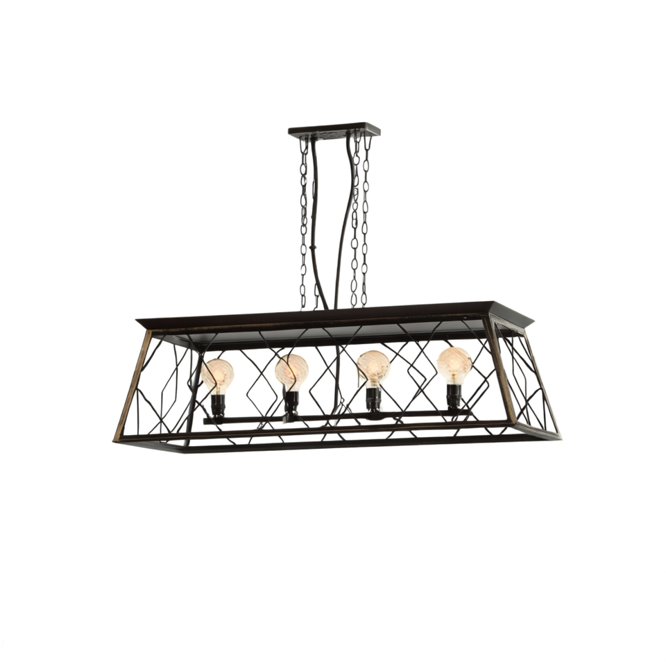 Rectangular Black Iron Chandelier 4 Light E26 Incandescent Bulbs Adjustable Height For Kitchen Dining Room